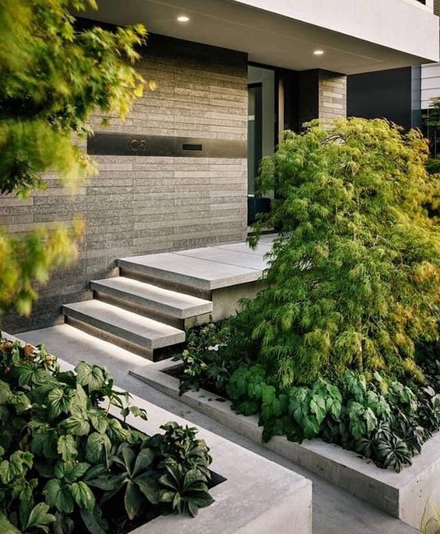 Lối đi vào với hình khối hiện đại kết hợp với cảnh quan xung quanh,tùy theo yêu cầu mà ta có thể kết hợp nhiều vật liệu khác nhau để làm nổi bật ý đồ thiết kế.
