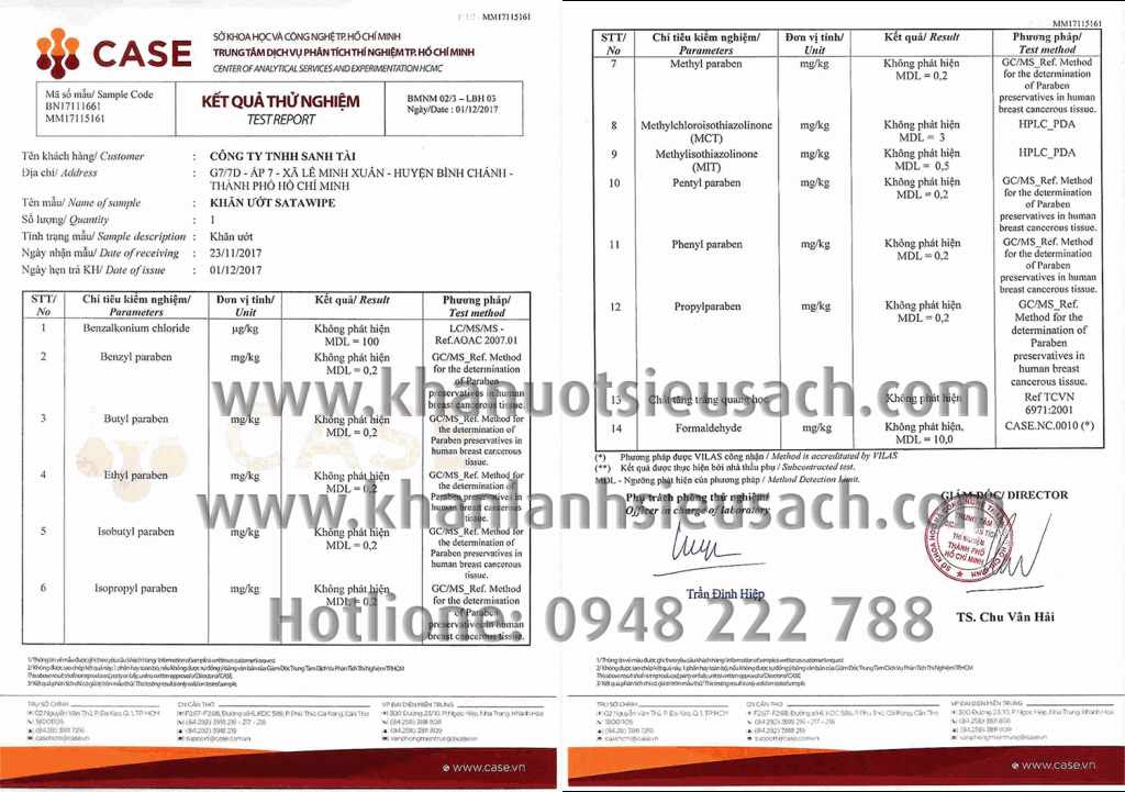 Kết quả xét nghiệm hóa lý của trung tâm CASE