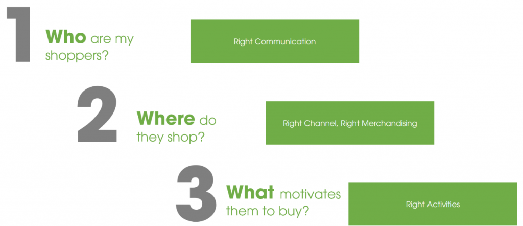Đầu tiên, người làm Trade Marketing phải hiểu Target Consumer (khách hàng mục tiêu) của Brand đang hướng tới là ai. Với từng nhóm Target consumer, Trade Marketing mới xác định ra nhóm Shopper tương ứng (có thể giống hoặc khác nhau).