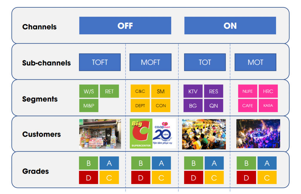 Tùy vào từng ngành hàng của doanh nghiệp mà kênh phân phối cũng thay đổi rất đa dạng. Từ kênh truyền thống đến hiện đại (MT & GT), từ tiêu dùng trực tiếp đến mua về nhà (On-premise & Off-premise),..