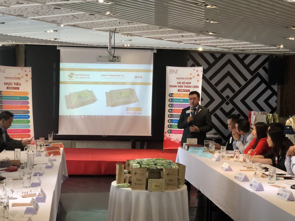 On December 12, 2019, Mr. Nguyen Trung Minh, CEO of Sanh Tai Company has had a showcase introduce about the product Super clean wet wipes, with Akira’s brand, the presentation was so success with the attendance of 42 member businesses and 38 guests.