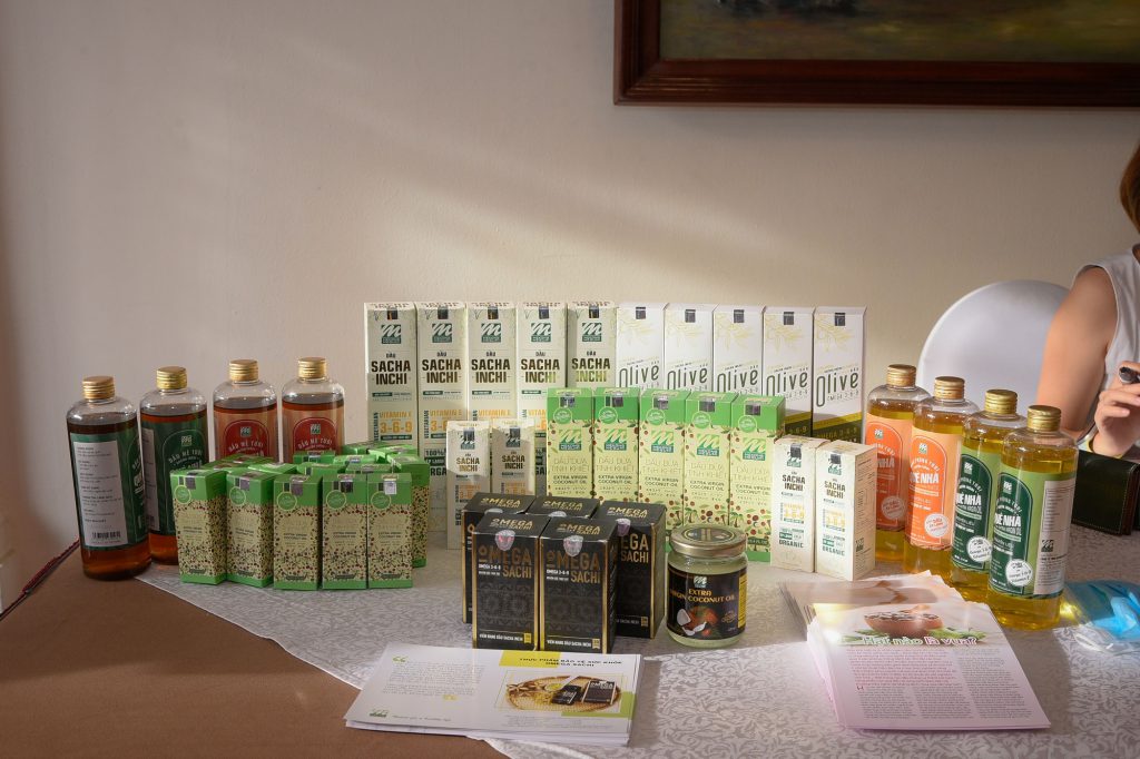 Gian hàng dầu Sachi/ dầu dừa/ dầu Oliu/ Viên nang Omega 369 với phần giới thiệu của Anh Ngô Trung Hiếu, sáng lập thương hiệu Mekong Megumi.