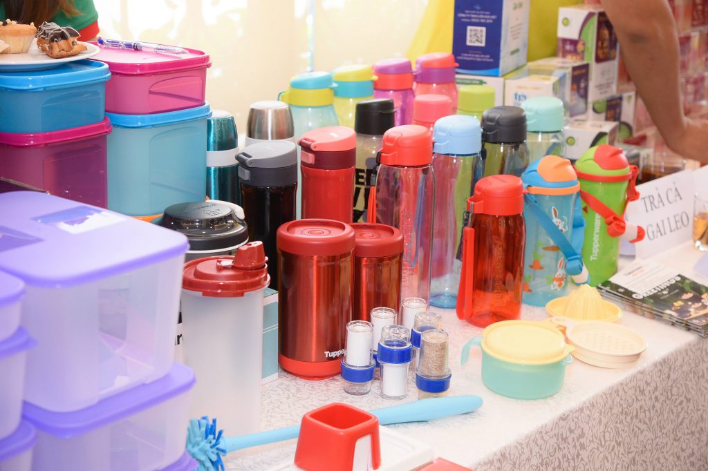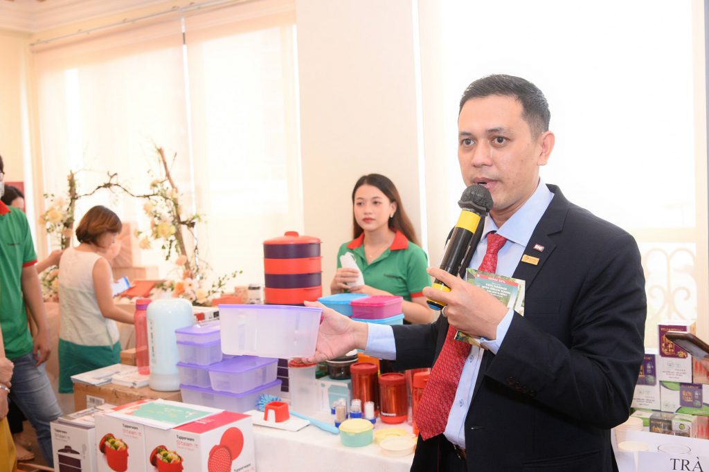 Gian hàng đồ gia dụng Tupperware với phần giới thiệu của anh Nguyễn Duy Tân, đến từ Công Ty Sato Group.