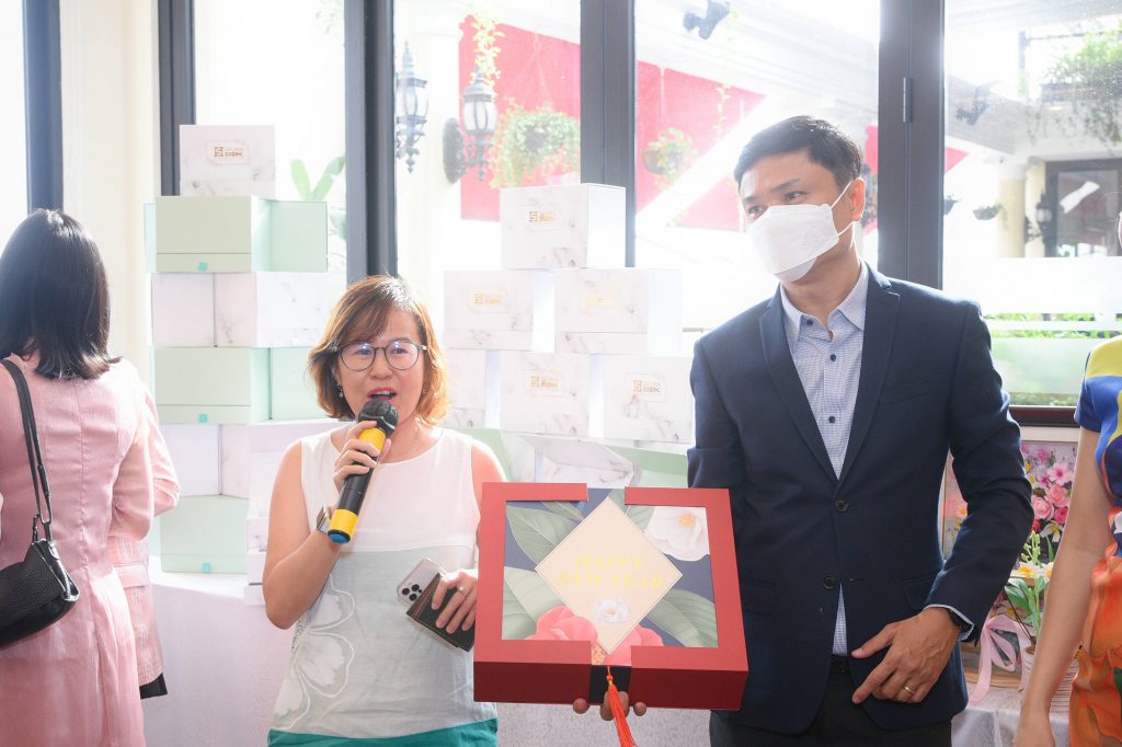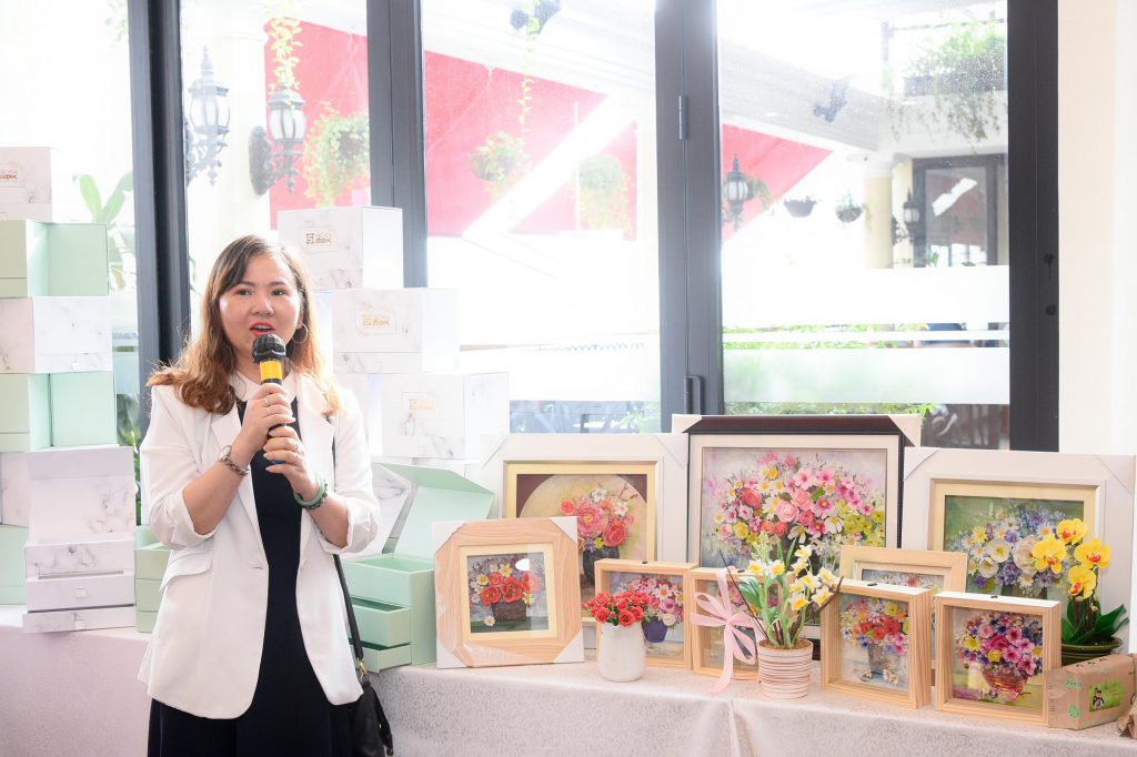 Gian hàng bao bì hộp quà tặng Sắc Hoa với phần giới thiệu của chị Nguyễn Thảo Nguyên.