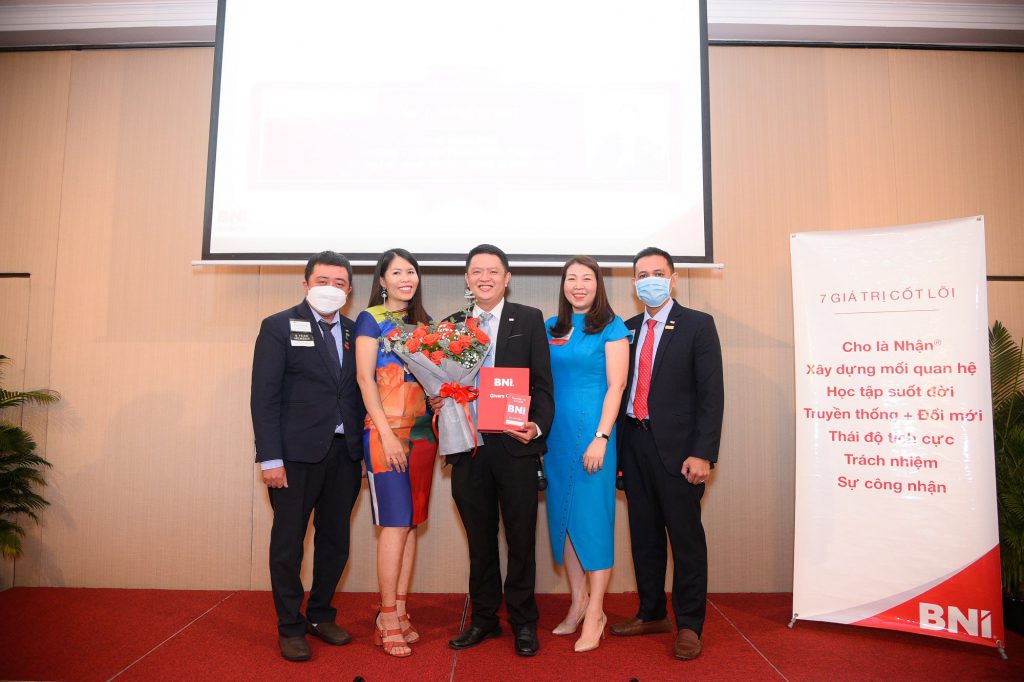 Nối tiếp là phần họp kết nối kinh doanh theo kịch bản 20 bước như hàng tuần. Đặc biệt, buổi họp ngày 2/12/2021, cũng là lễ kết nạp một thành viên mới tham gia vào ngôi nhà chung BNI AlphaBiz Chapter, Anh Lưu Vĩ Dũng – Phó Giám Đốc – Công Ty TNHH Phân Phối Thiên An, với lĩnh vực đăng ký trong chapter là kinh doanh sản phẩm nước I-on kiềm thương hiệu Fujiwa.