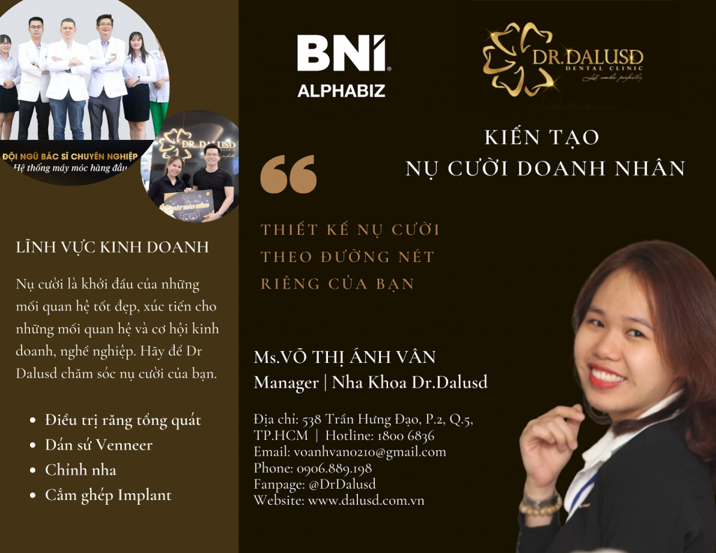 “Nụ cười là khởi đầu của những mối quan hệ tốt đẹp, xúc tiến cho những mối quan hệ và cơ hội kinh doanh, nghề nghiệp. Hãy để Dr Dalusd chăm sóc nụ cười của bạn”.